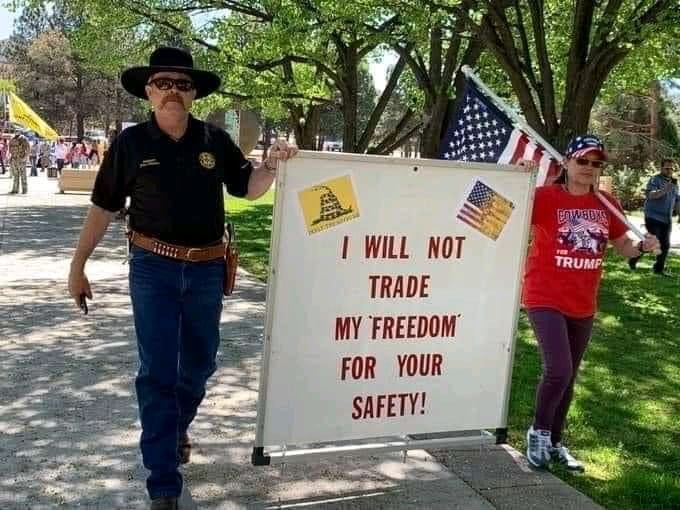 I could not have put it any better had I given it the old college try. I should add here that, due to the fact that I have Type 2 diabetes, high blood pressure and a touch of emphysema, were I to be exposed to one of these extremist jackasses who are asymptomatic, I would probably be a goner as well. In David Cohen's Facebook posting, he wrote something that jumped out at me and illustrated perfectly the heart of the problem: